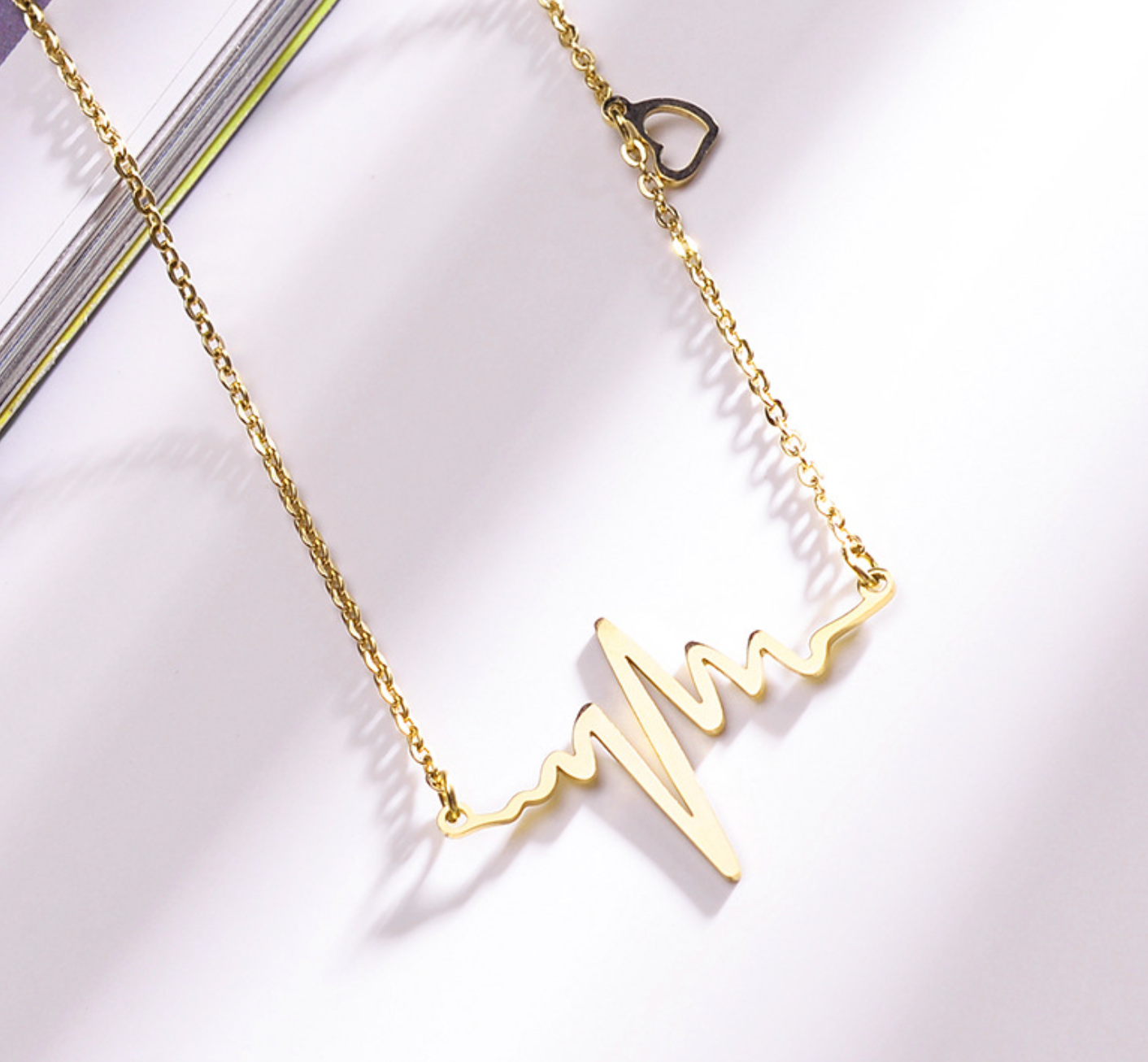 A Heart Beat Impulse Pendant comes with an extra heart charm Attached to the Chain/Necklace for your Neck. Pair it with any of our earrings for the ultimate classic look. Handcrafted jewelry, a thick 18K gold layer in stainless steel to complete your Everyday Look. Heartbeat Necklace gives an Edgy, Sophisticated, Classic, and Formal look. Feel and get the look of gold jewelry in a fragment of the price.